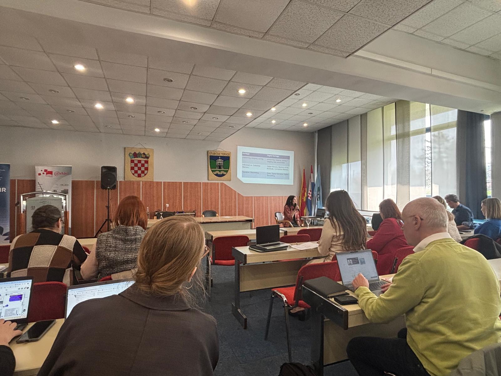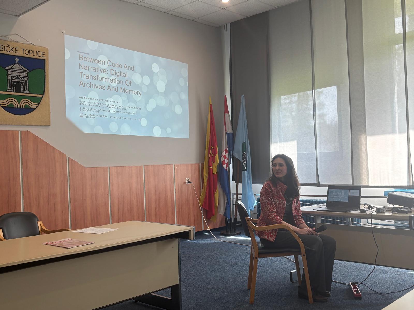 Na konferenciji su sudjelovale CULTMED suradnice dr. sc. Aleksandra Uzelac i dr. sc. Barbara Lovrinić Higgins koja je održala izlaganje pod naslovom: „Između koda i pripovijedanja: Digitalna transformacija arhiva i pamćenja“. Izlaganje je problematiziralo utjecaj digitalne tehnologije na strukturu znanja i arhivsku praksu. Naglasak je stavljen na suodnos između algoritamske obrade podataka i ljudske potrebe za narativom, uz zaključak kako digitalna transformacija iz temelja mijenja način na koji arhive gradimo, koristimo i razumijemo u suvremenom društvu.